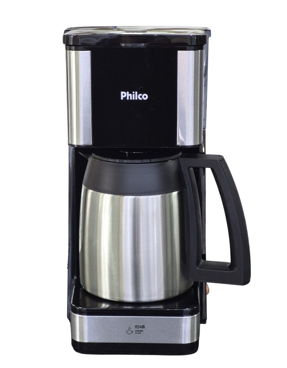 A Philco PCF40D tem jarra térmica em inox, que mantém o café quentinho por mais tempo, e filtro permanente removível, dispensando o uso de papel, e com seu sistema corta-pingos permite servir o café mesmo durante o preparo, sem sujeira.